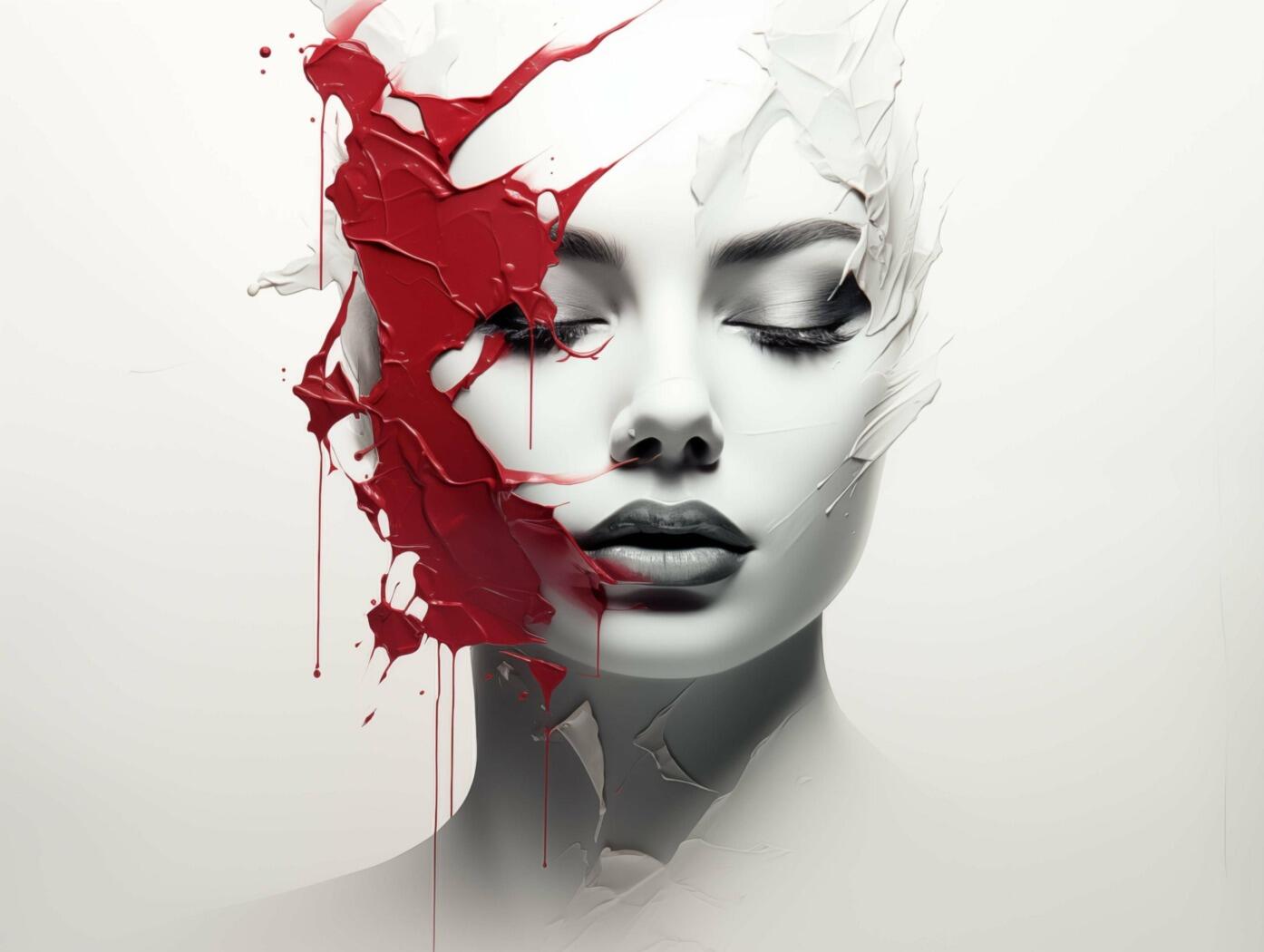 Glasschilderij – Exclusive – Liggend – Abstract Vrouw Paint