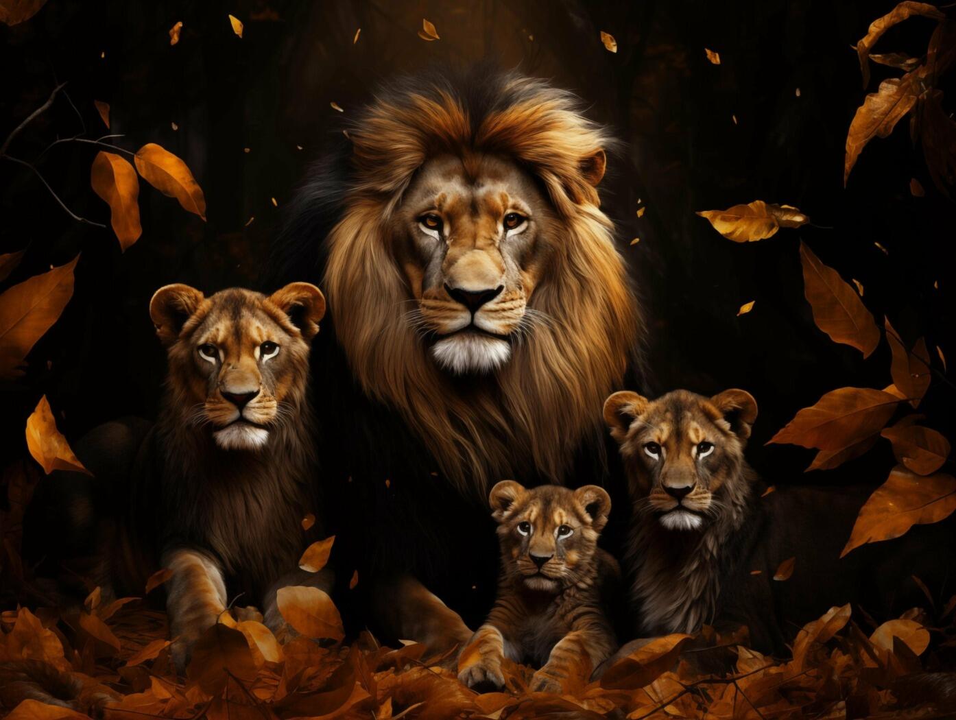 Glasschilderij – Exclusive – Liggend – Leeuwenfamilie 2 Welpen Britt