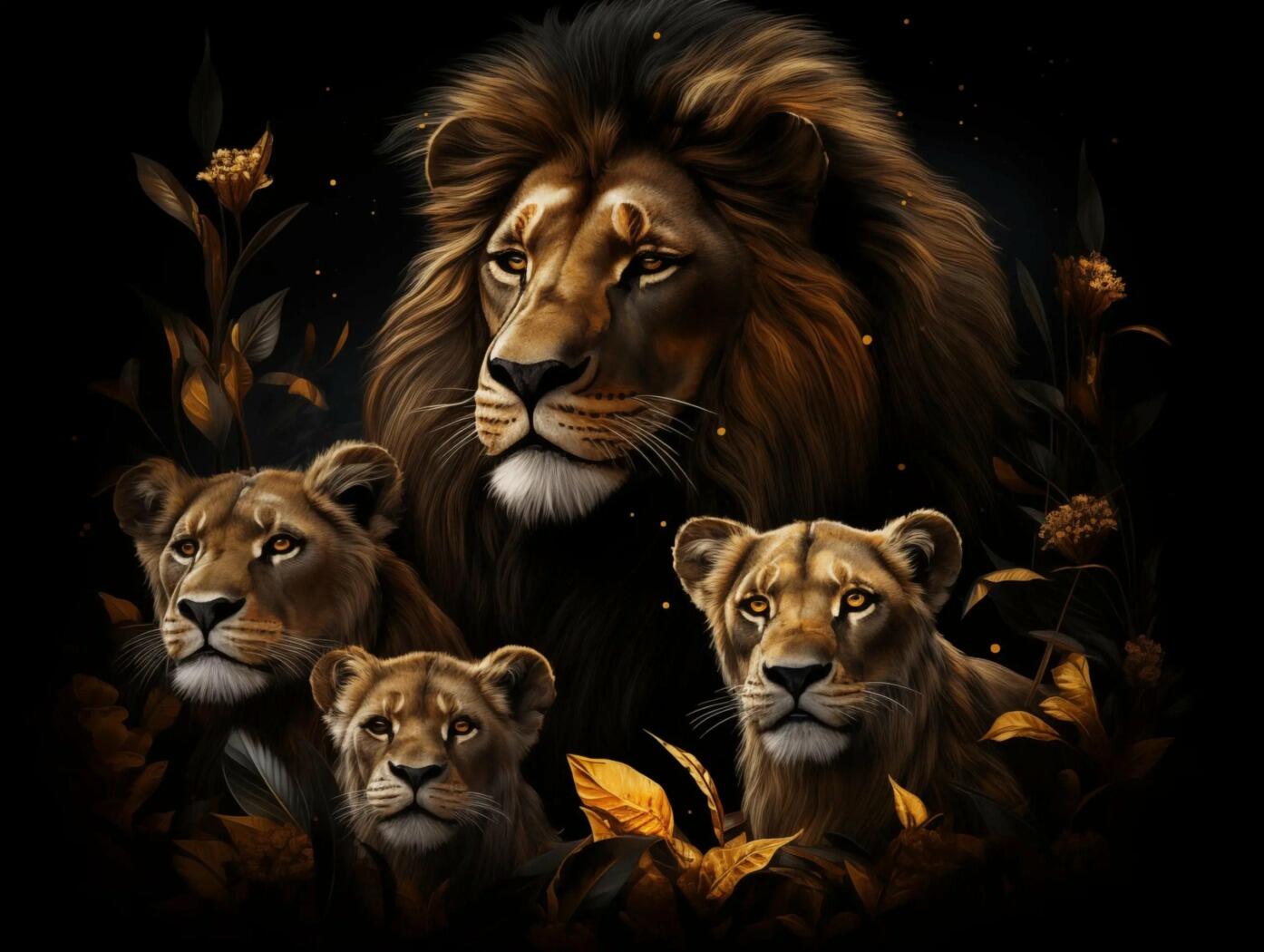 Glasschilderij – Exclusive – Liggend – Leeuwenfamilie 3 welpen Alice