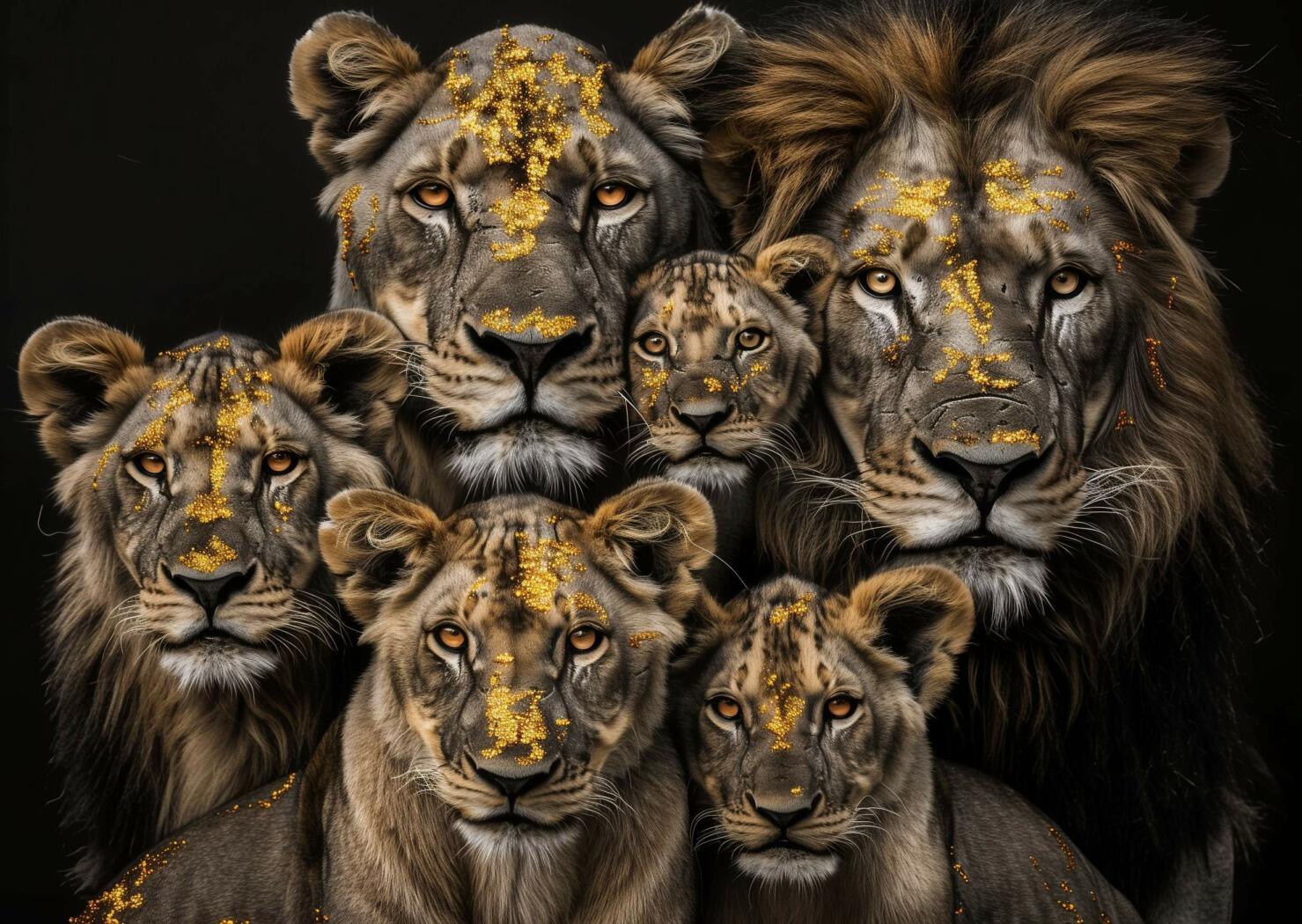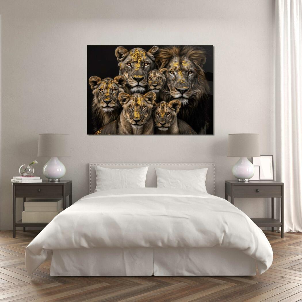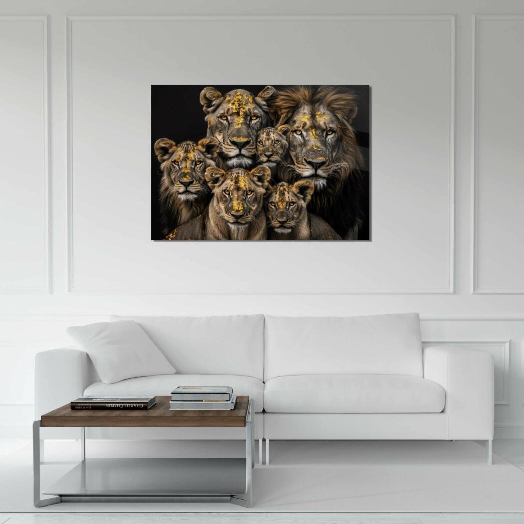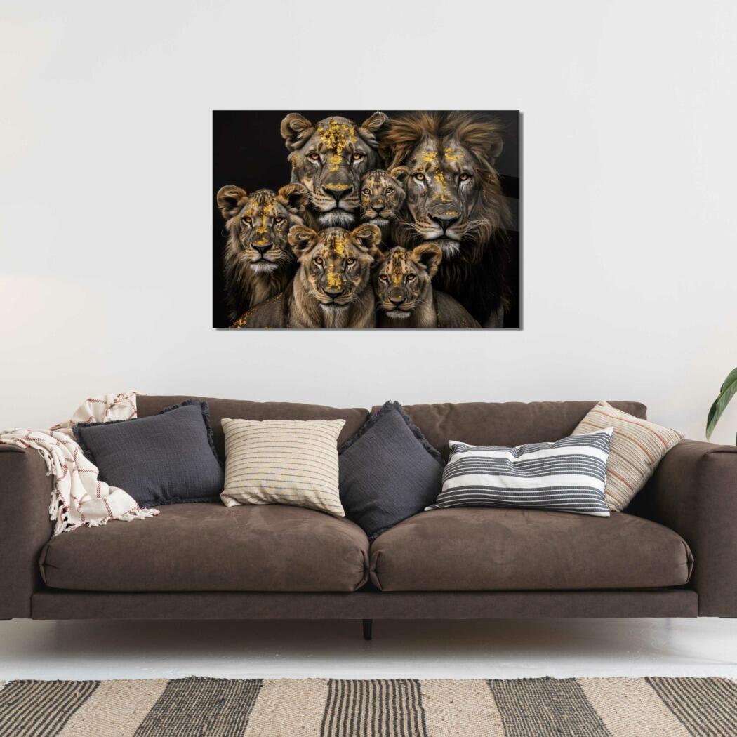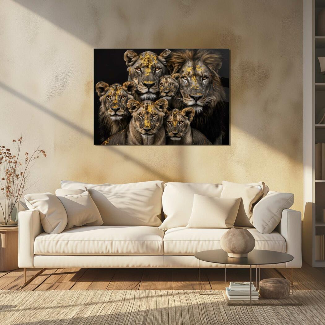 Glasschilderij – Exclusive – Liggend – Leeuwenfamilie 4 Welpen, van Rijn – Gouden Eeuw Serie