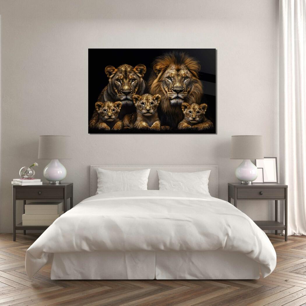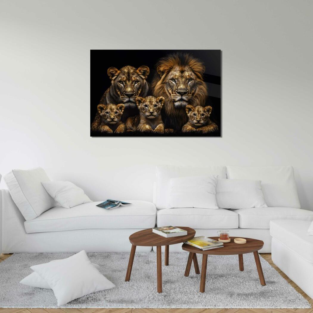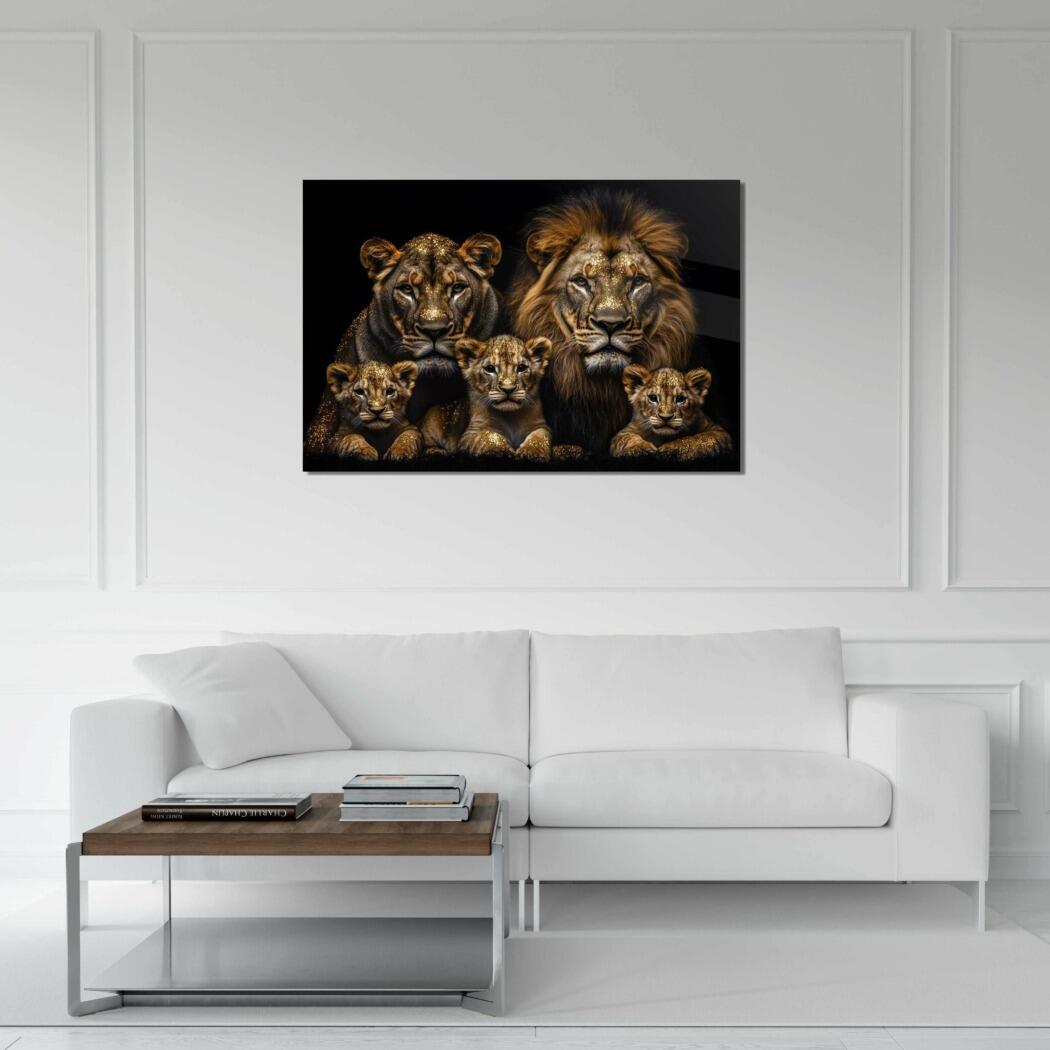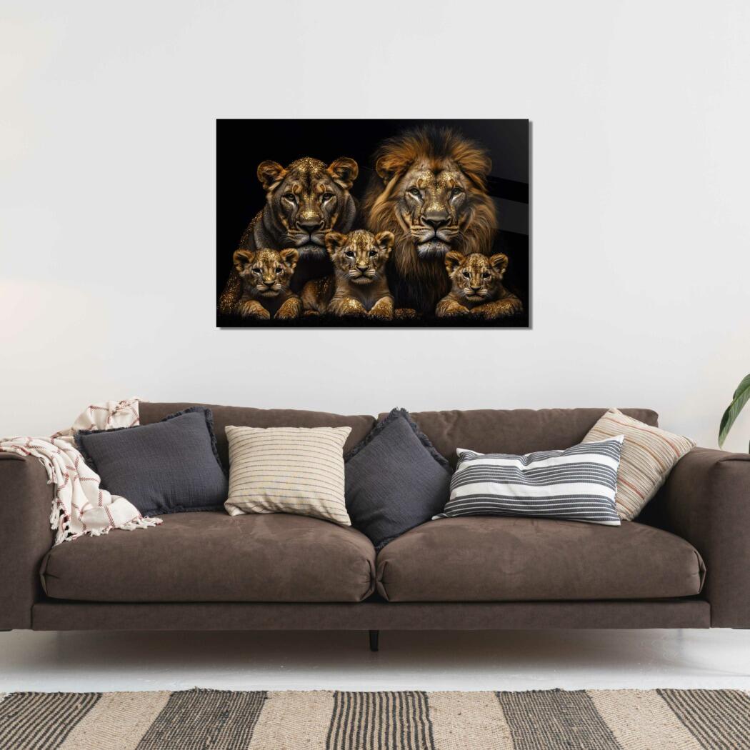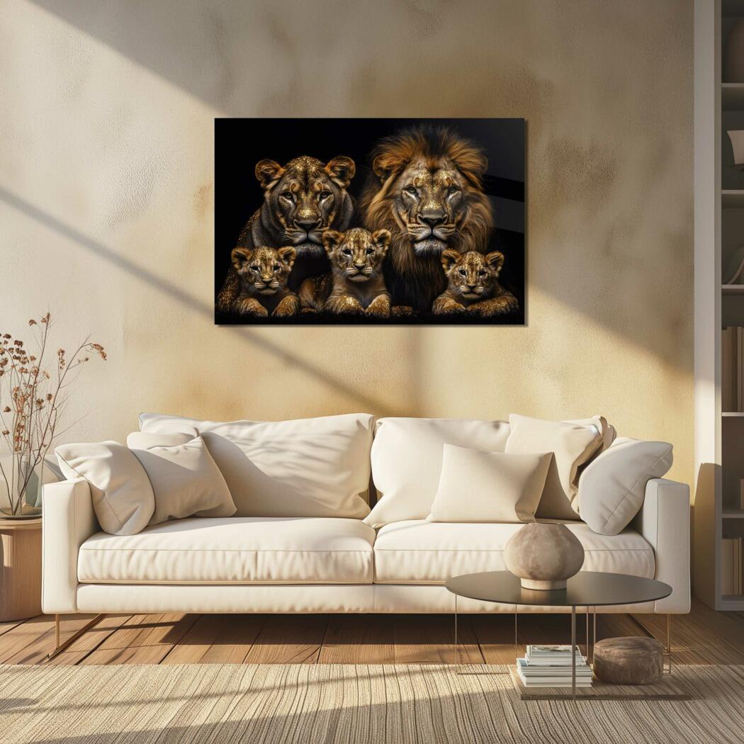 Glasschilderij – Exclusive – Liggend – Leo Simba Leeuwenfamilie 3 Welpjes – Gouden Eeuw Serie