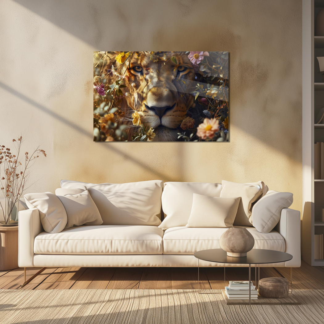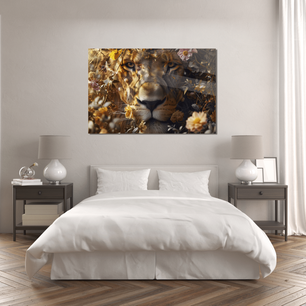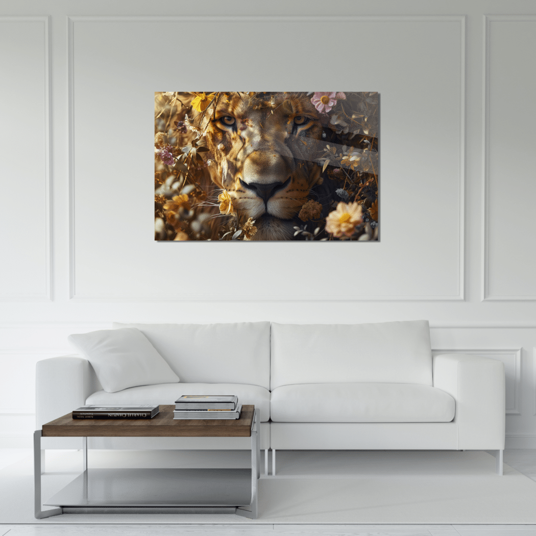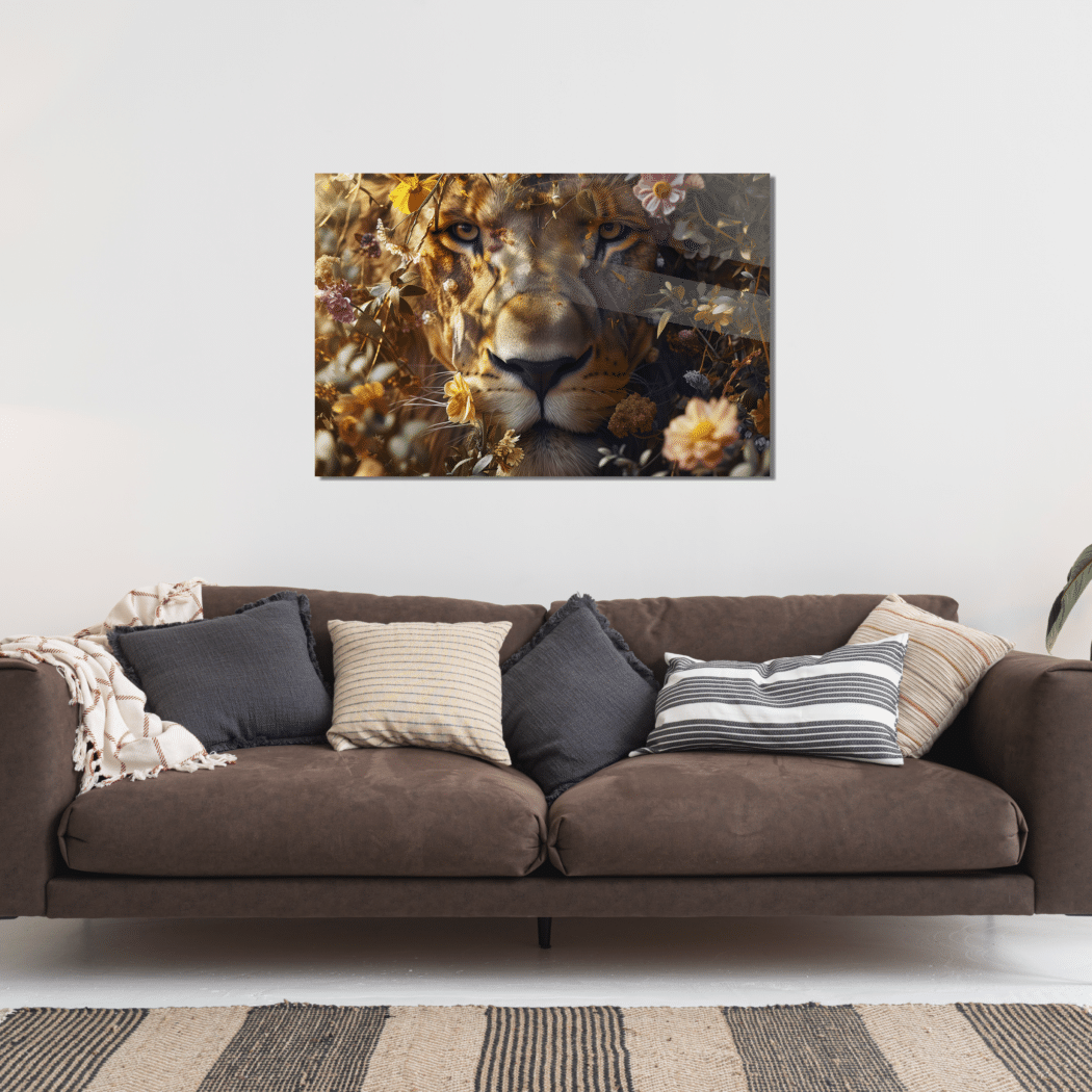 Glasschilderij – Exclusive – Liggend – De Zonnekoning Leeuw