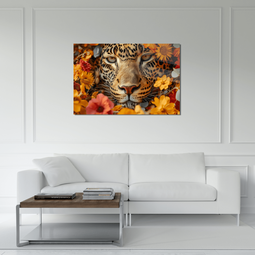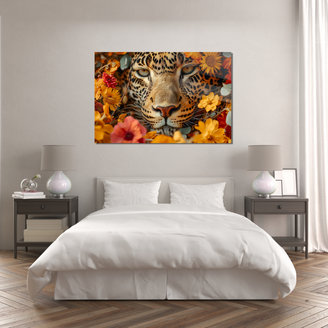 Glasschilderij – Exclusive – Liggend – Luipaardbloem’s Blik Panter