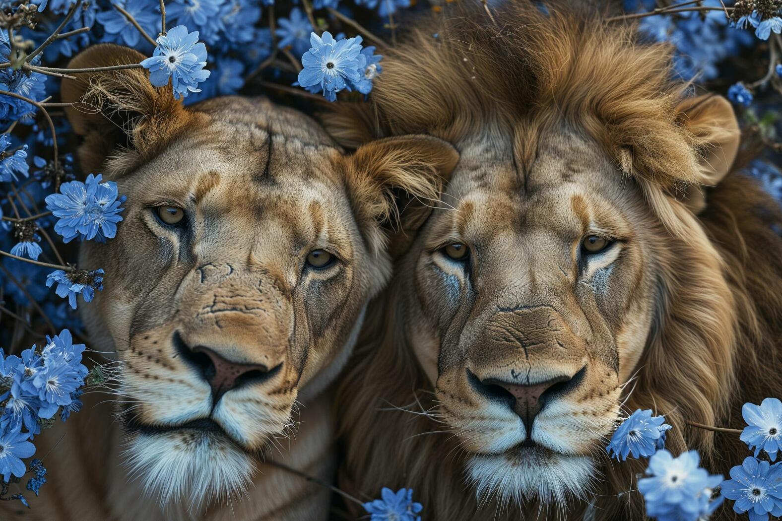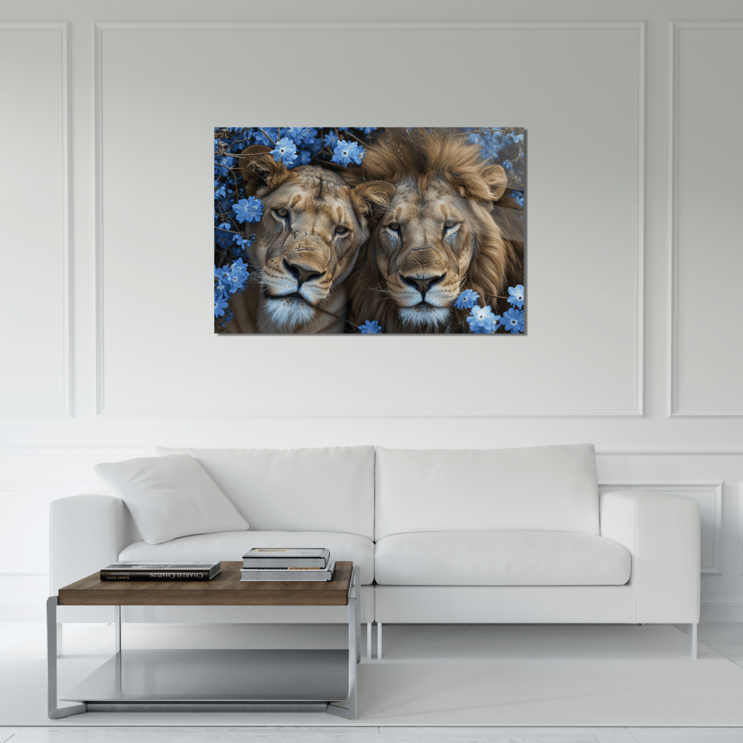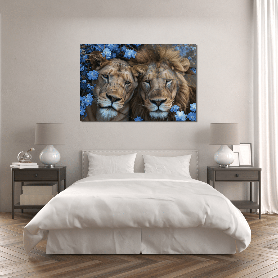 Glasschilderij – Exclusive – Liggend – Safari Bloesem Leeuwenliefde