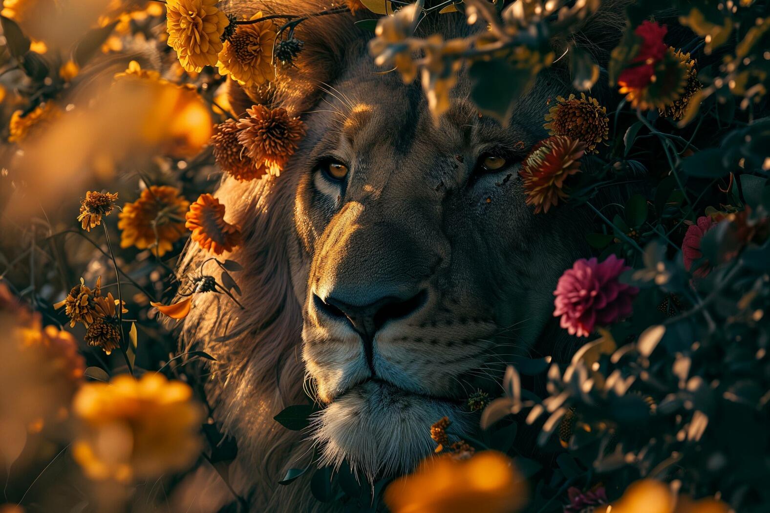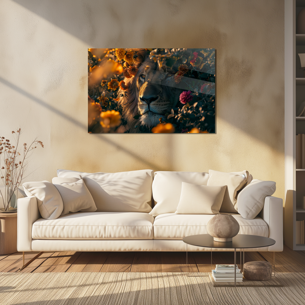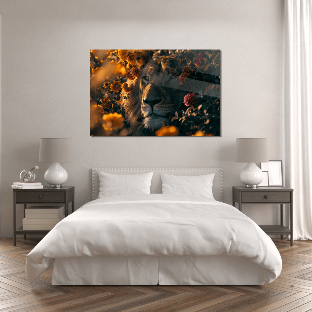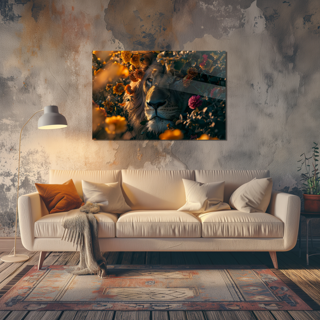 Glasschilderij – Exclusive – Liggend – De Bloemenkoning Leeuw
