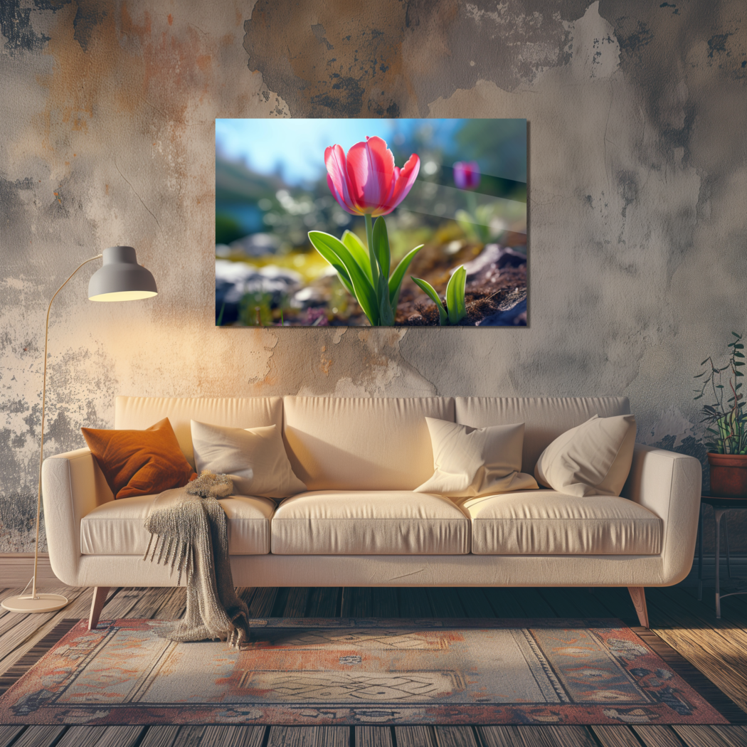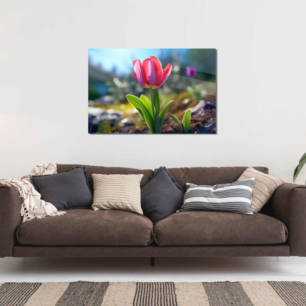 Glasschilderij – Exclusive – Liggend – Roze Tulp Bloemen