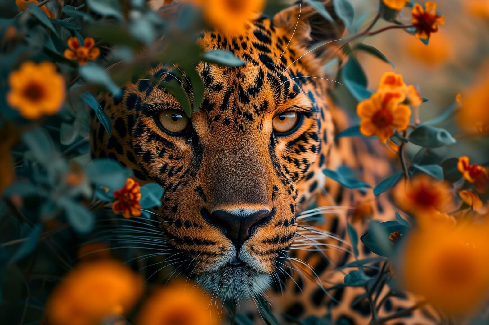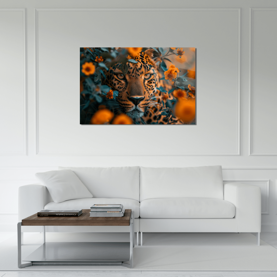 Glasschilderij – Exclusive – Liggend – Panter met Bloemen Sara