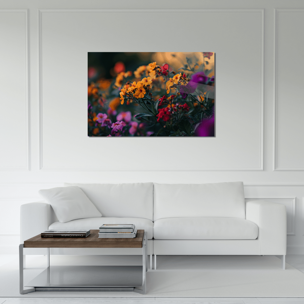 Glasschilderij – Exclusive – Liggend – Viooltjes Bloemen, Geel Paars