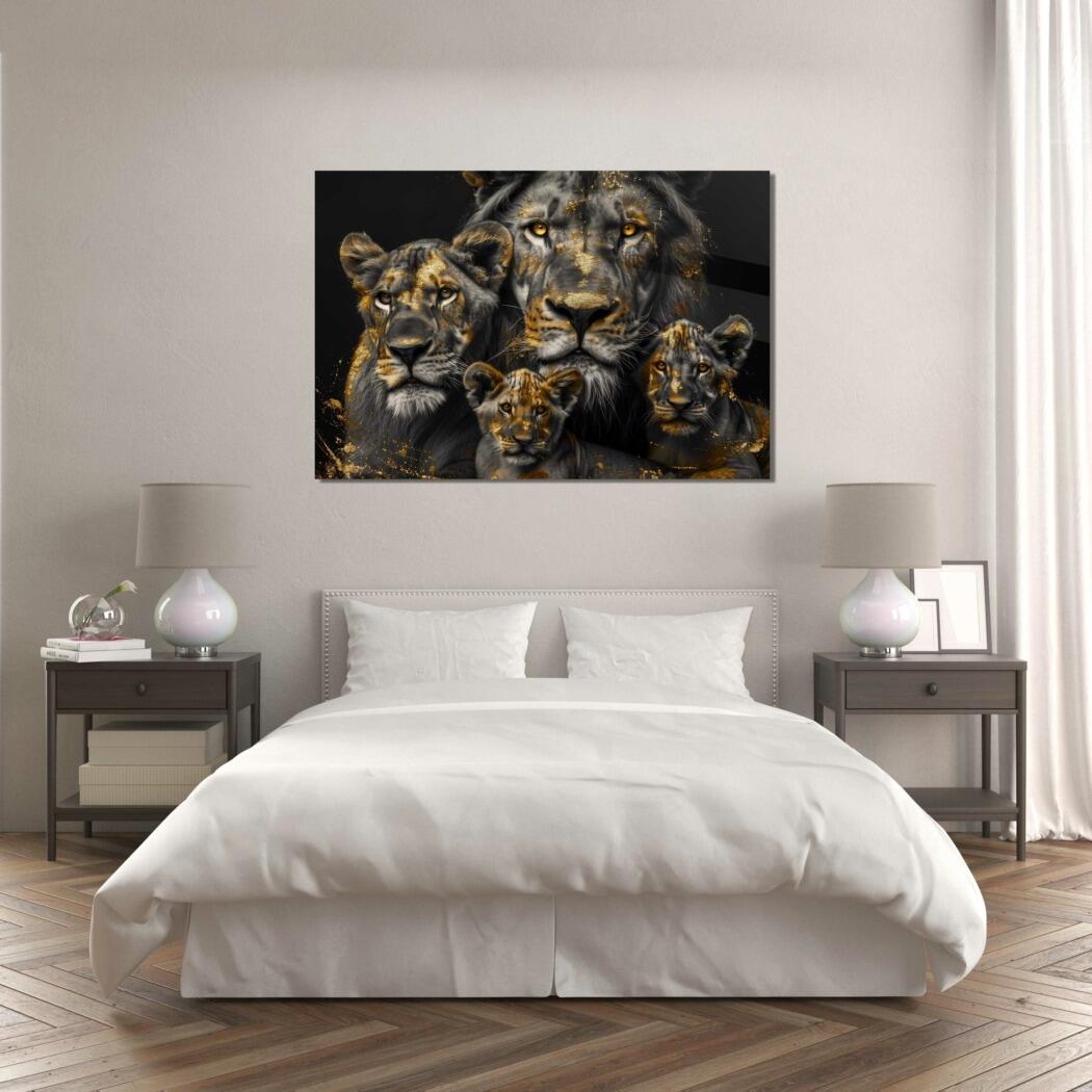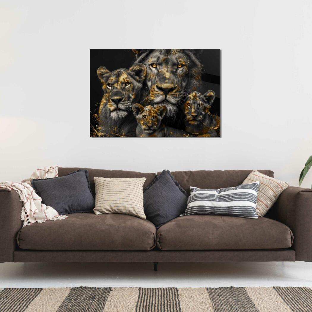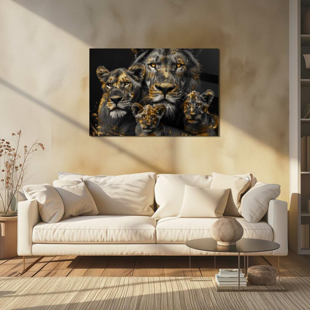 Glasschilderij – Exclusive – Liggend – Leeuwenfamilie 2 Welpjes Lotte – Gouden Eeuw Serie