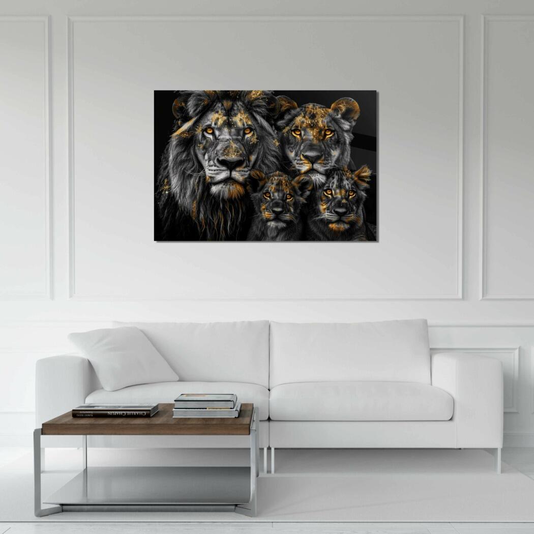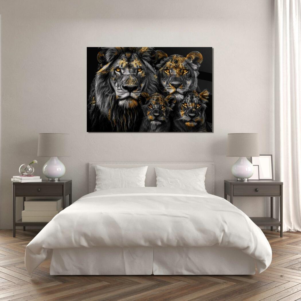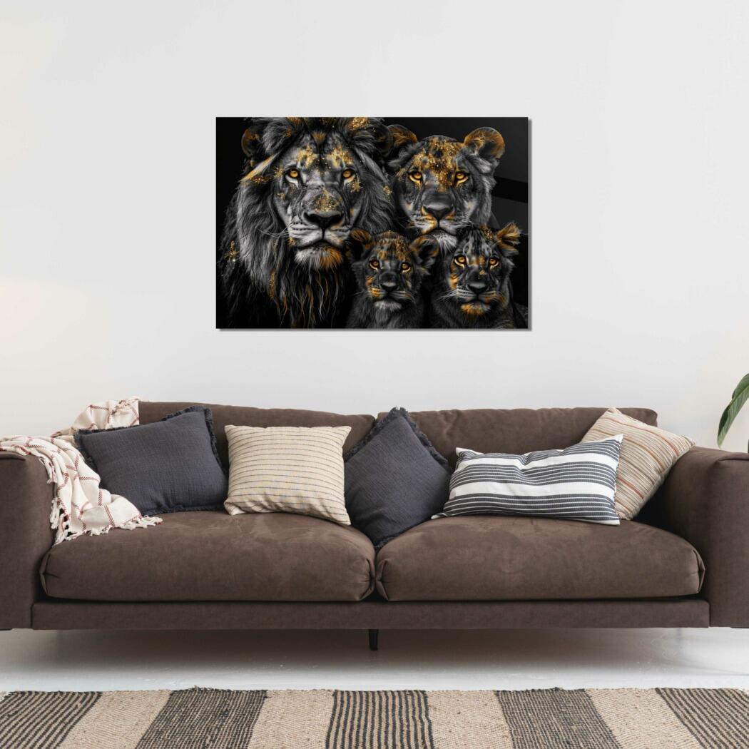 Glasschilderij – Exclusive – Liggend – Leeuwenfamilie 2 Welpjes, de Krijgers – Gouden Eeuw Serie