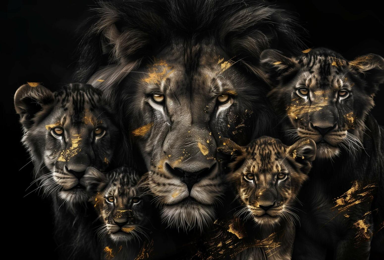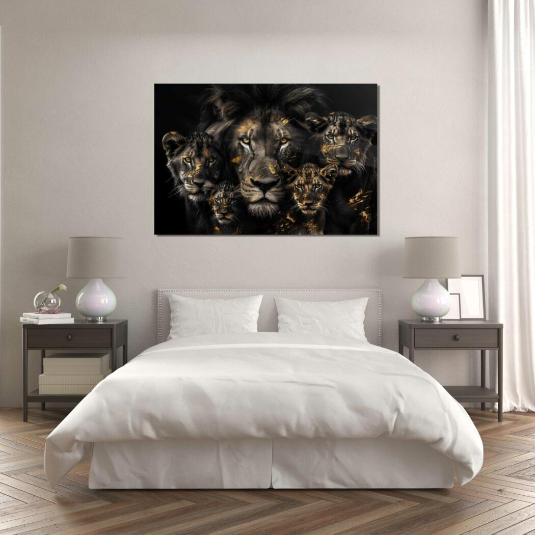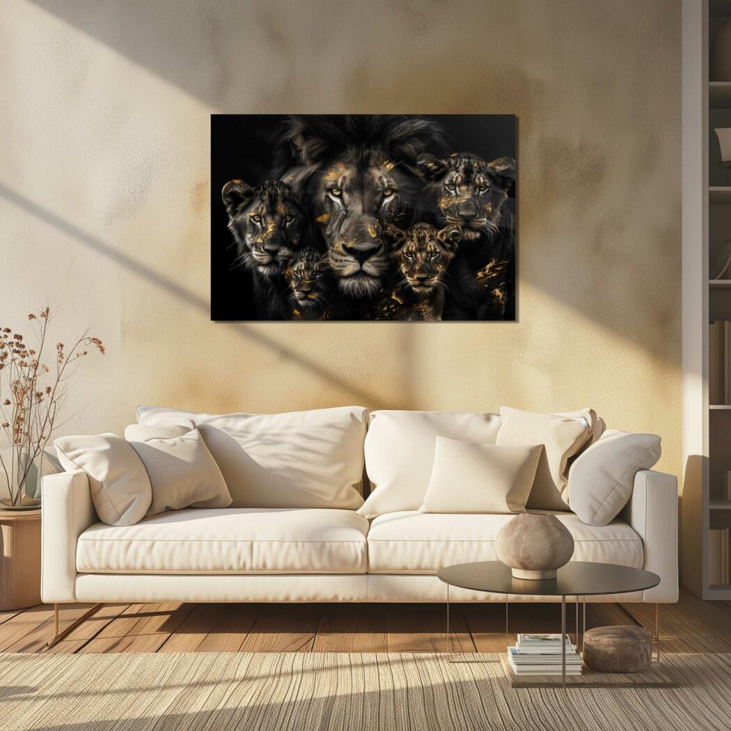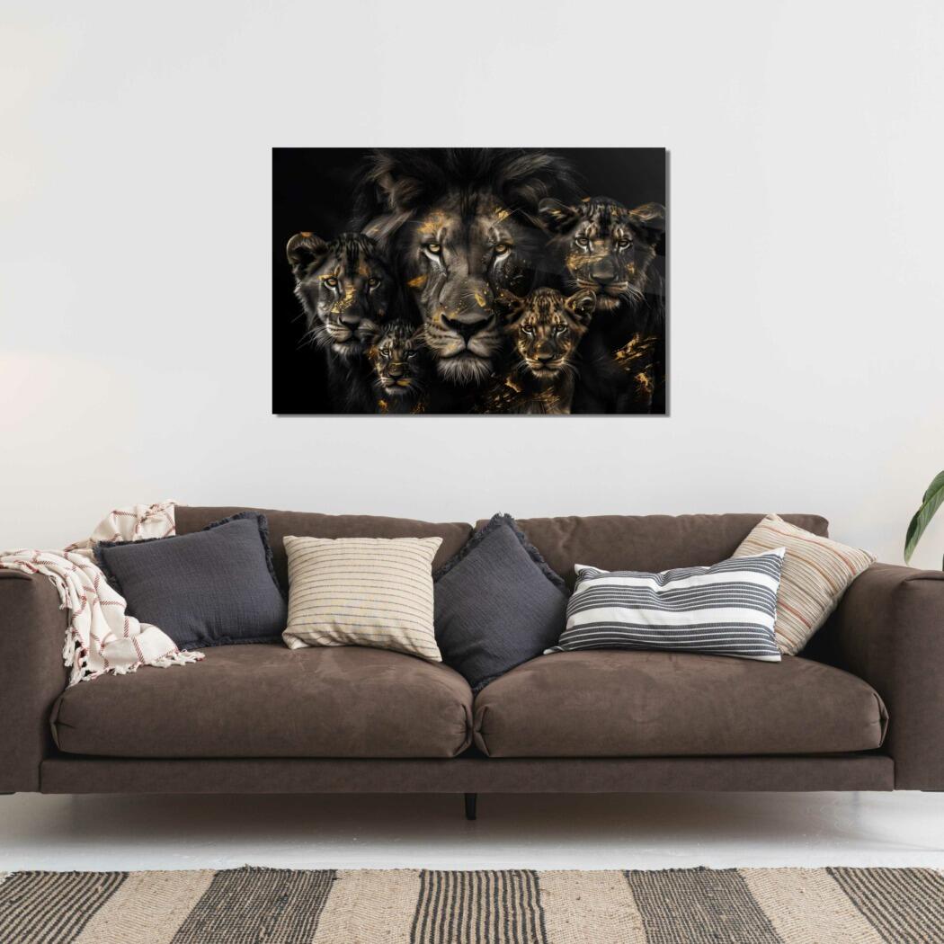Glasschilderij – Exclusive – Liggend – Leeuwenfamilie 3 Welpjes de Grote Brul – Gouden Eeuw Serie