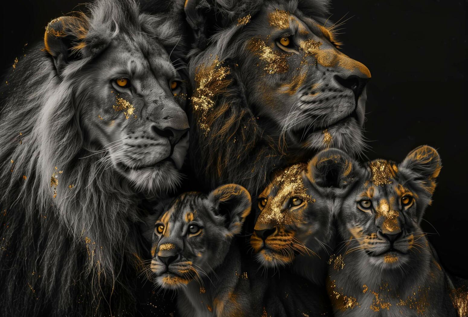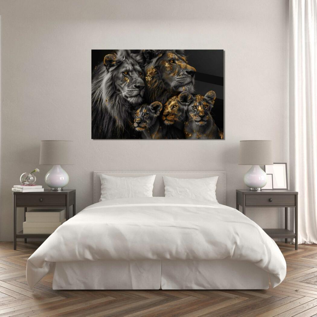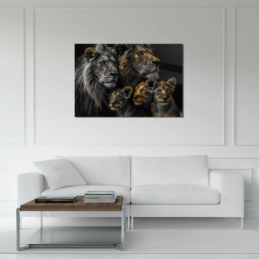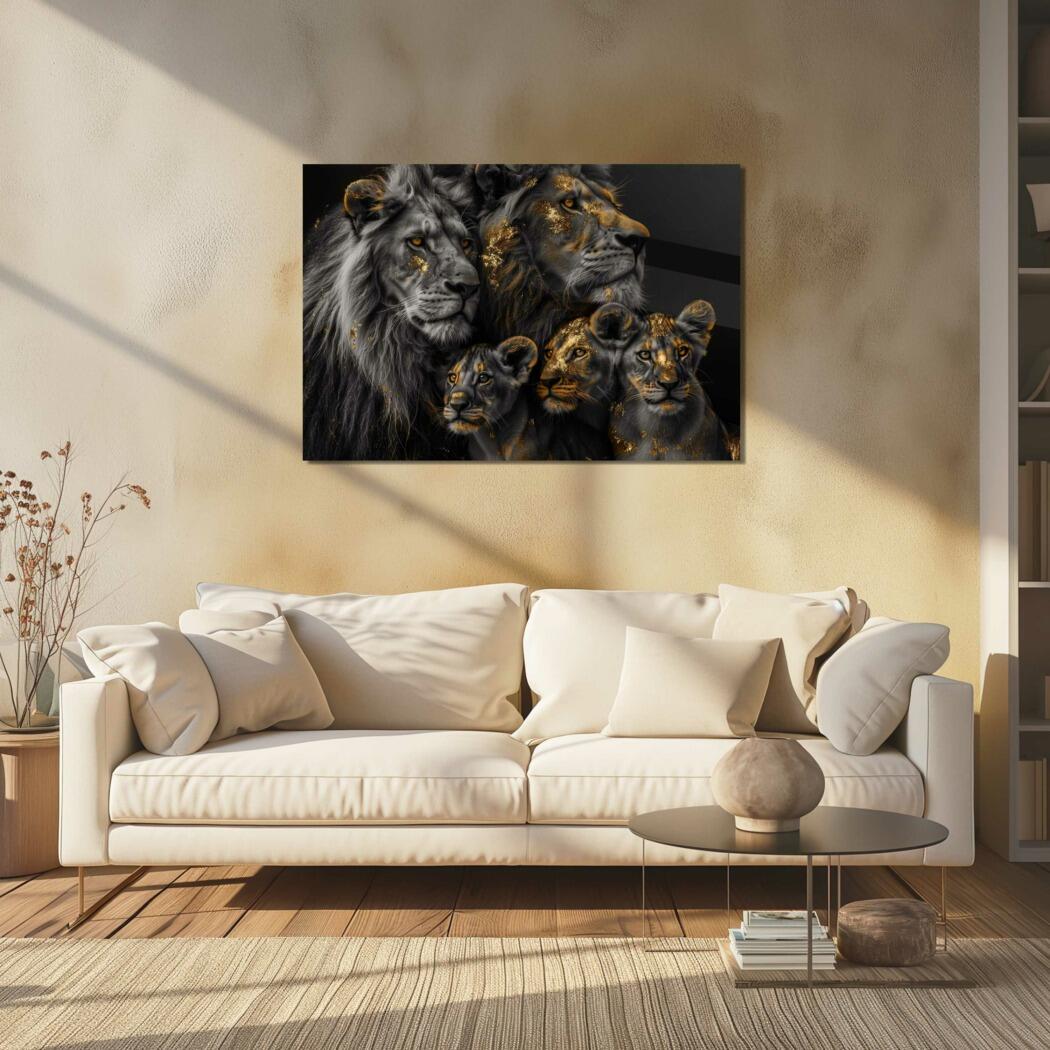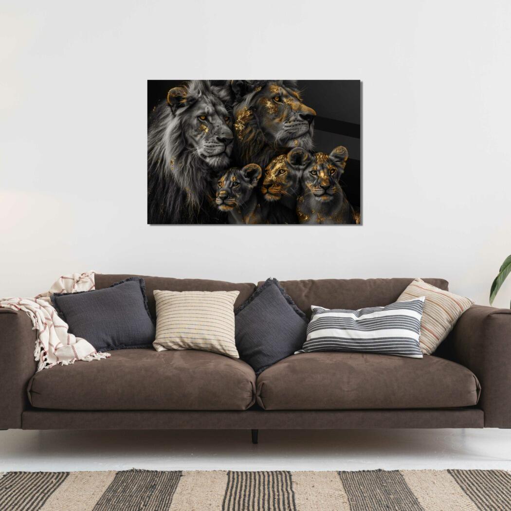 Glasschilderij – Exclusive – Liggend – Leeuwenfamilie 3 Welpjes Het Rijk – Gouden Eeuw Serie