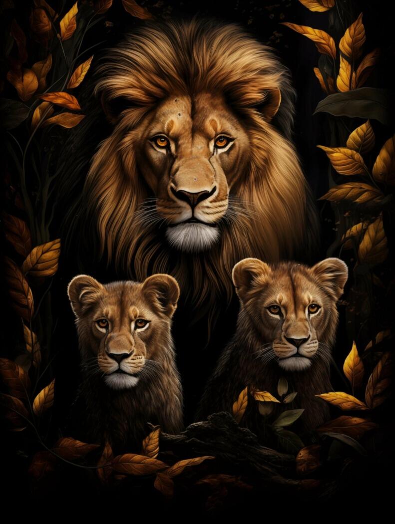 Glasschilderij – Exclusive – Staand – Leeuwenfamilie 2 Welpen Jack