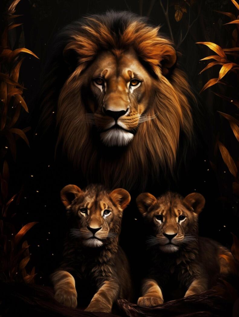 Glasschilderij – Exclusive – Staand – Leeuwenfamilie 2 Welpen Mona