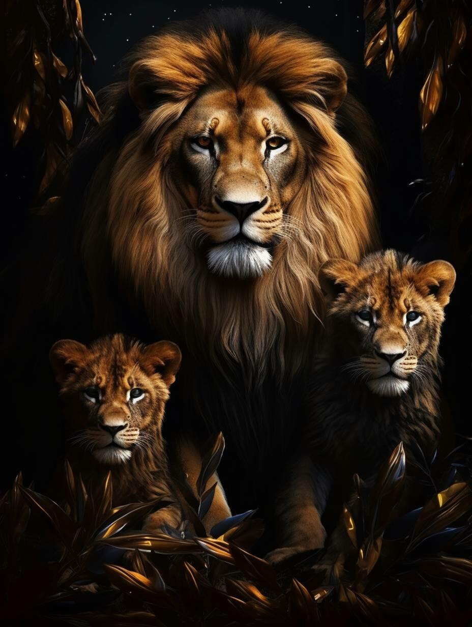 Glasschilderij – Exclusive – Staand – Leeuwenfamilie 2 Welpen Saar