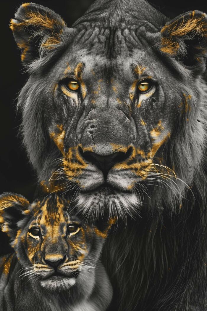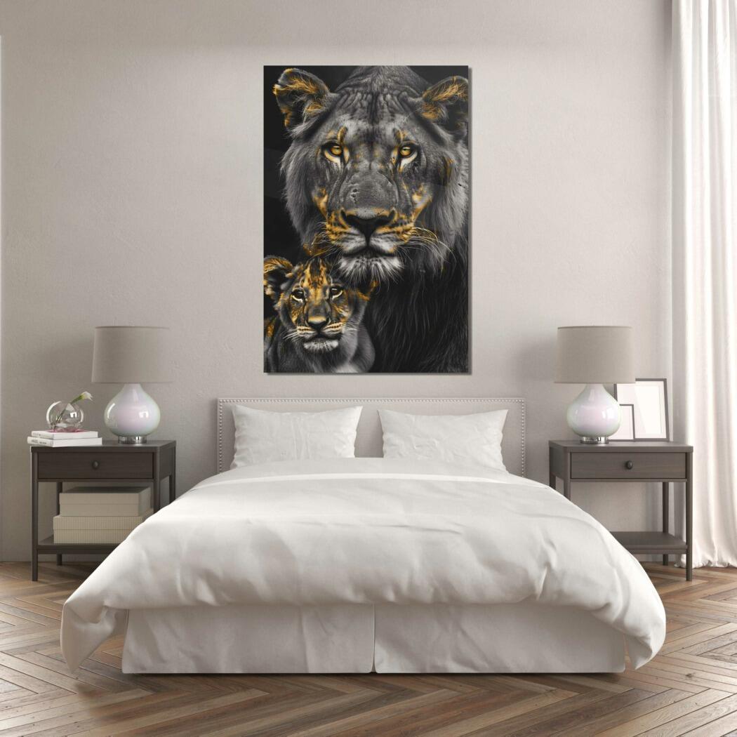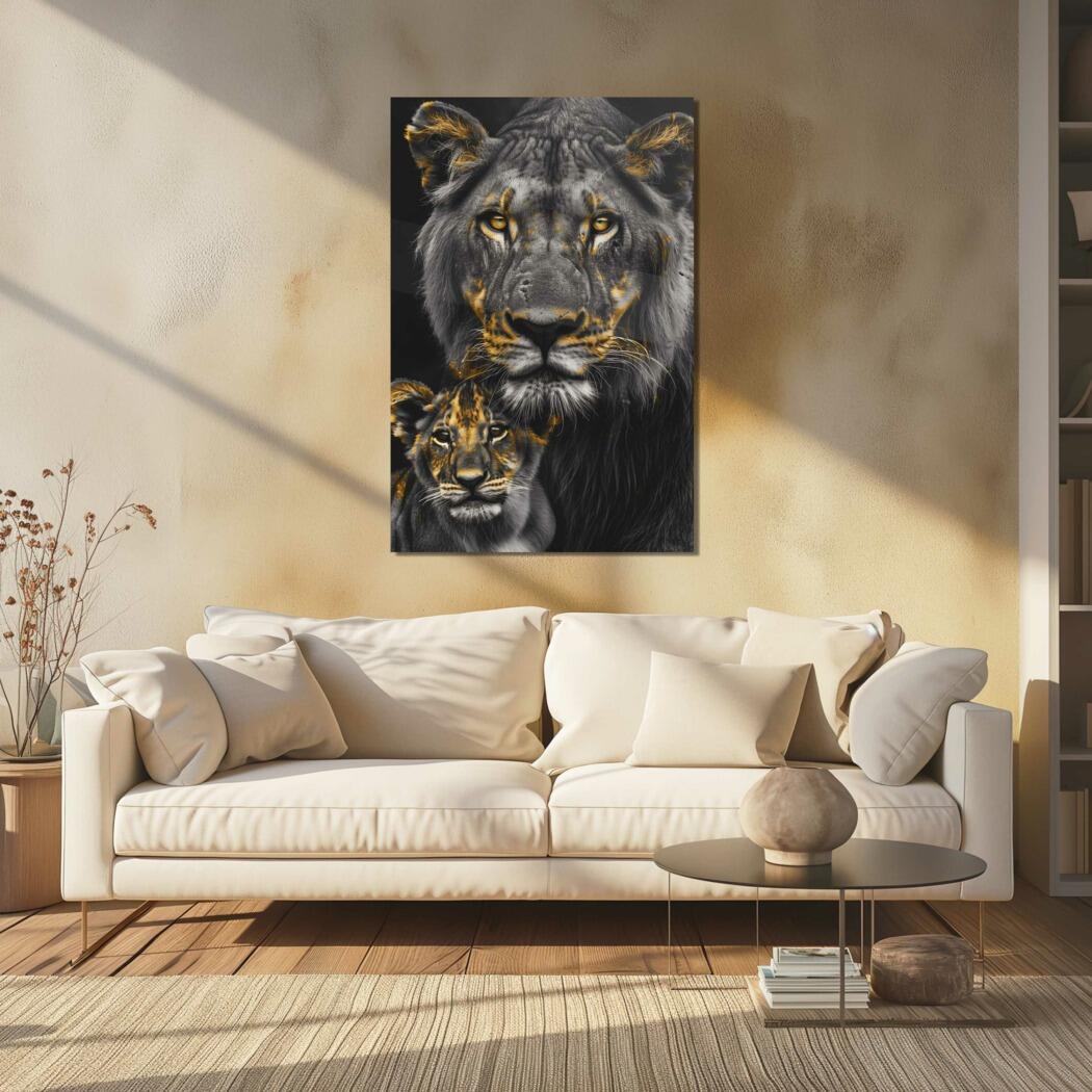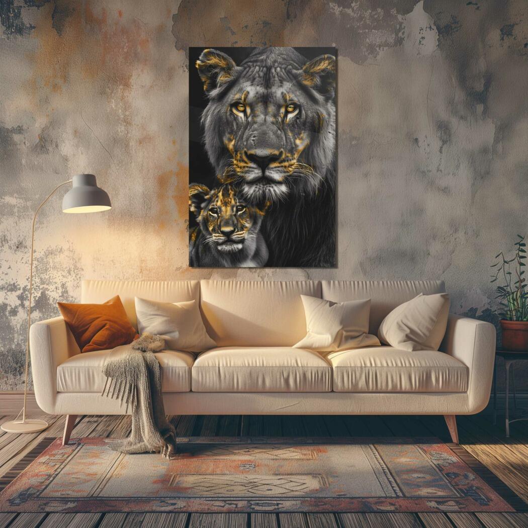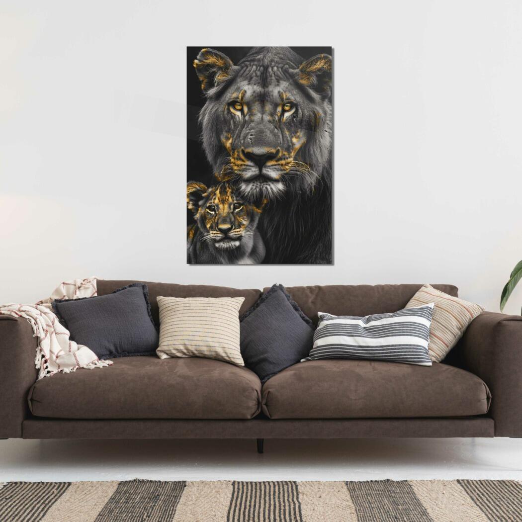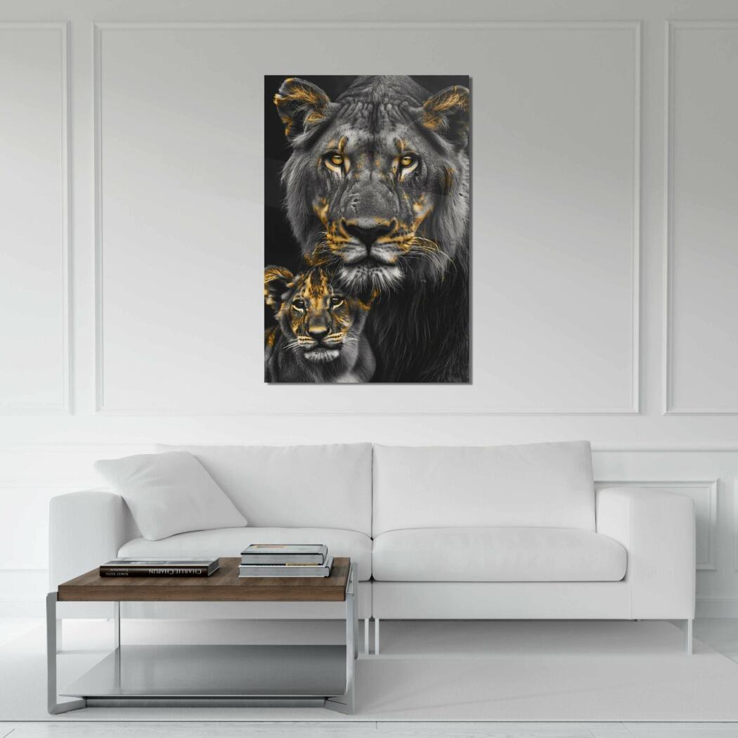 Glasschilderij – Exclusive – Staand – Leeuwenfamilie Moeder 1 Welpje Anouk – Gouden Eeuw Serie
