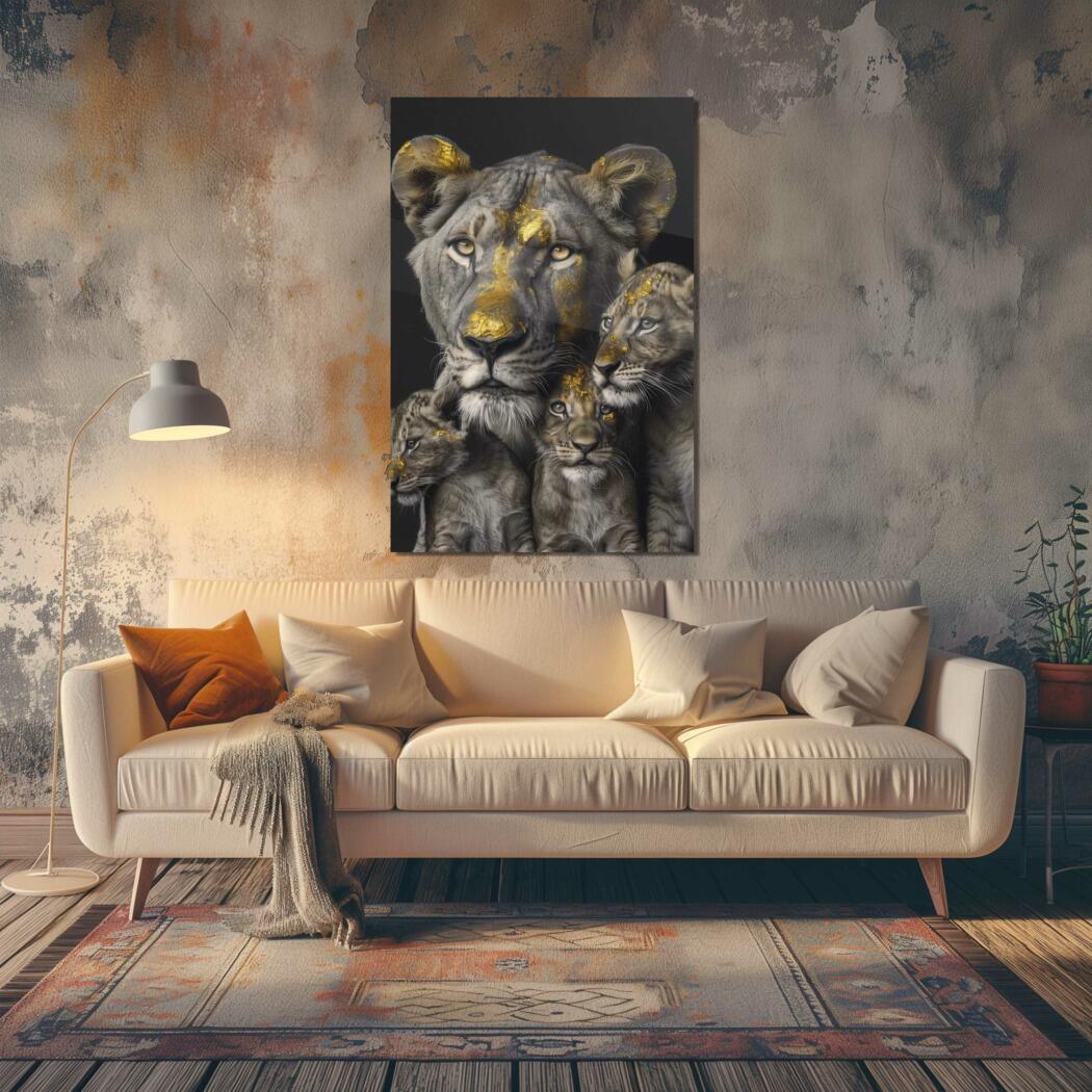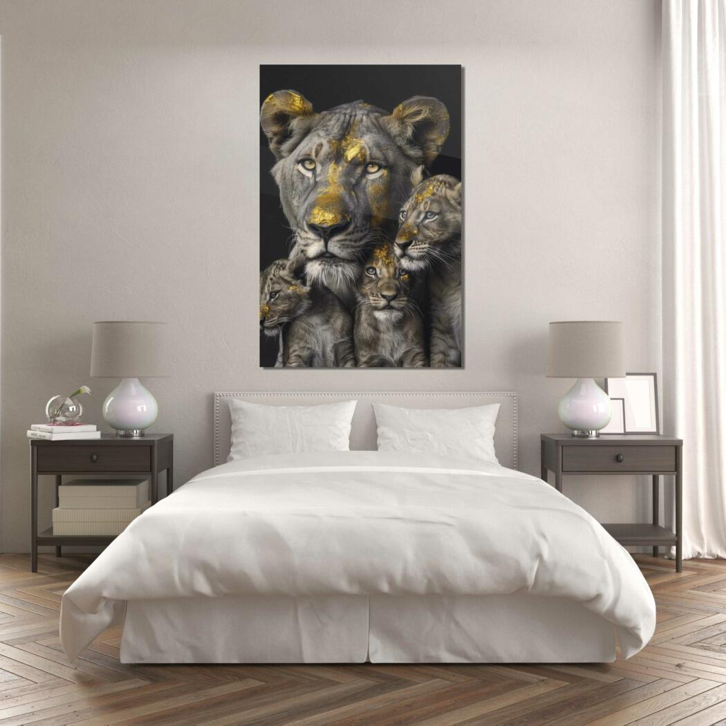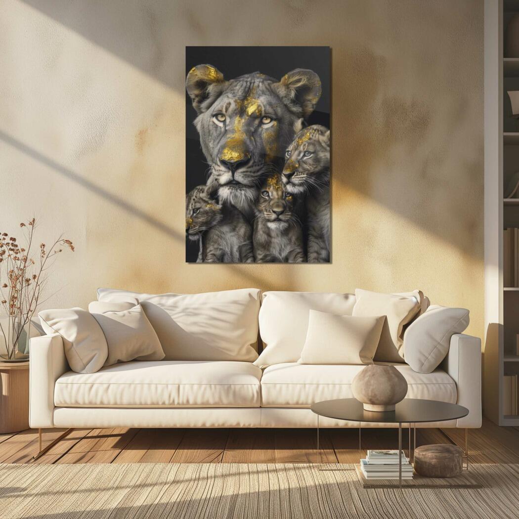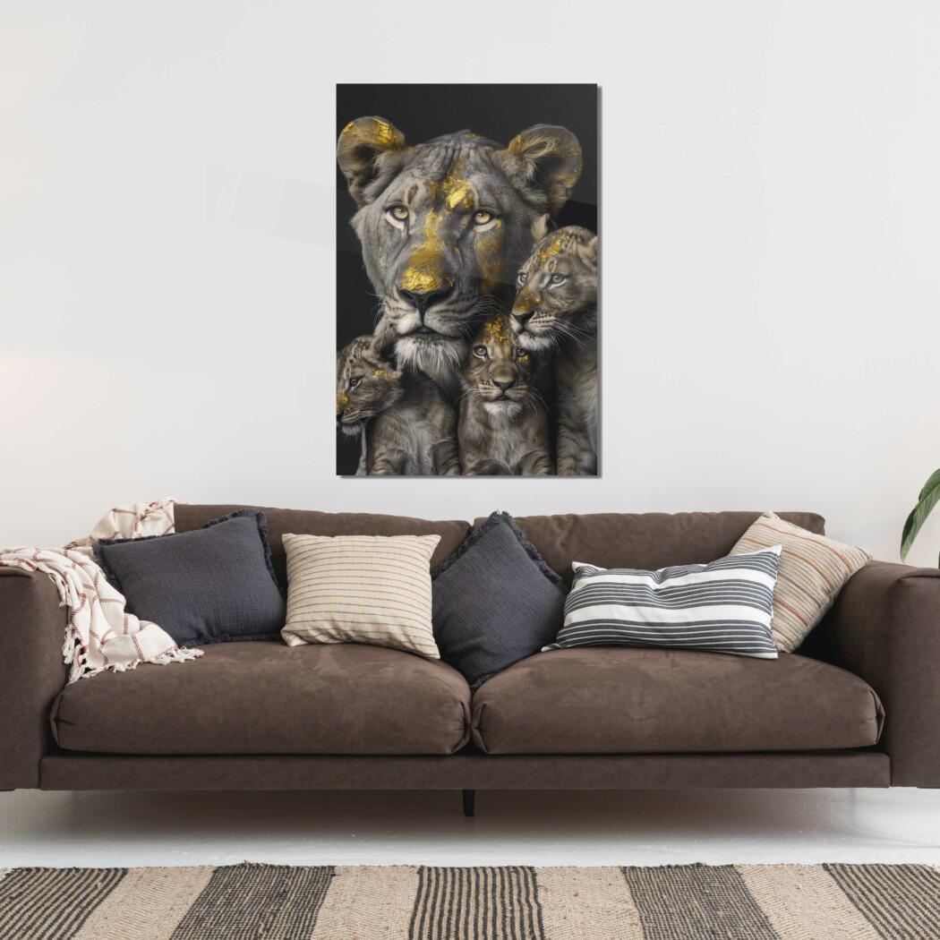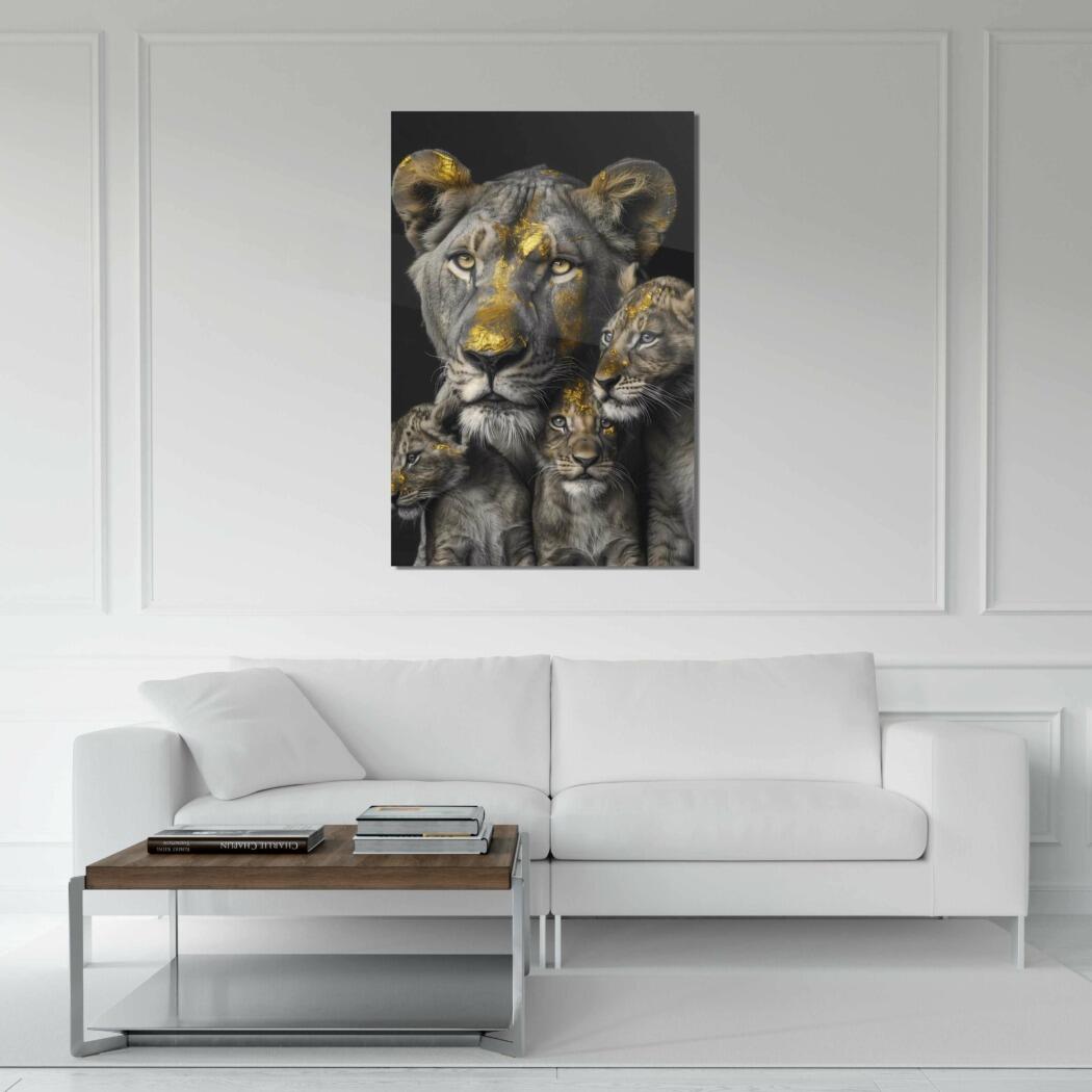 Glasschilderij – Exclusive – Staand – Leeuwenfamilie 3 Welpjes, van Rust – Gouden Eeuw Serie