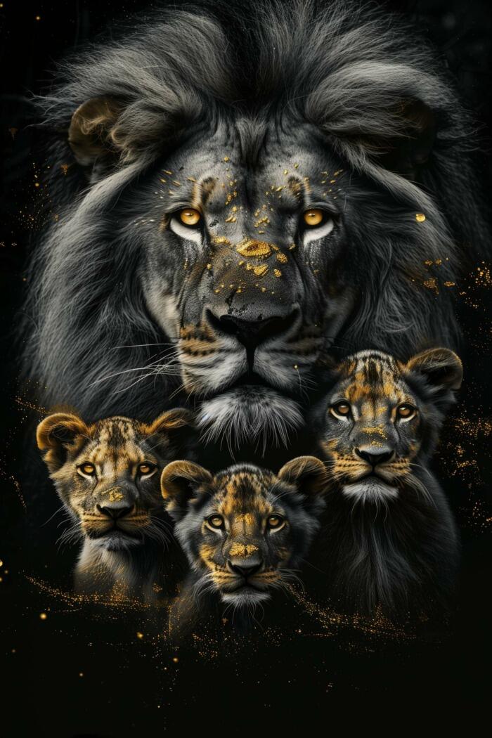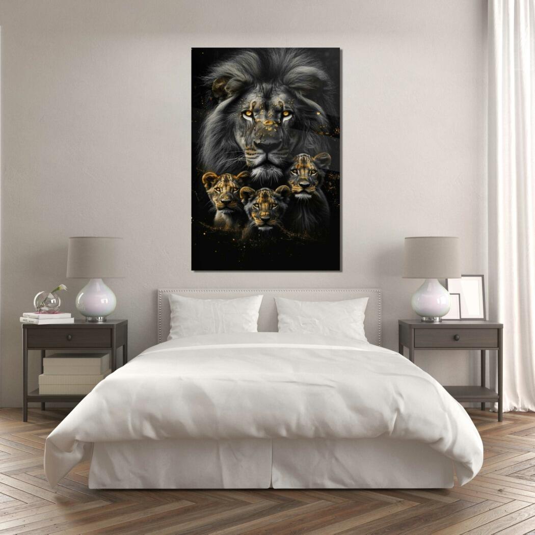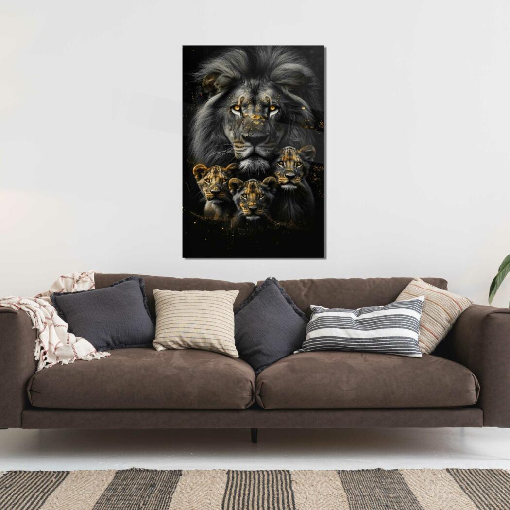 Glasschilderij – Exclusive – Staand – Leeuwenfamilie 3 Welpjes, de Oude Rovers – Gouden Eeuw Serie