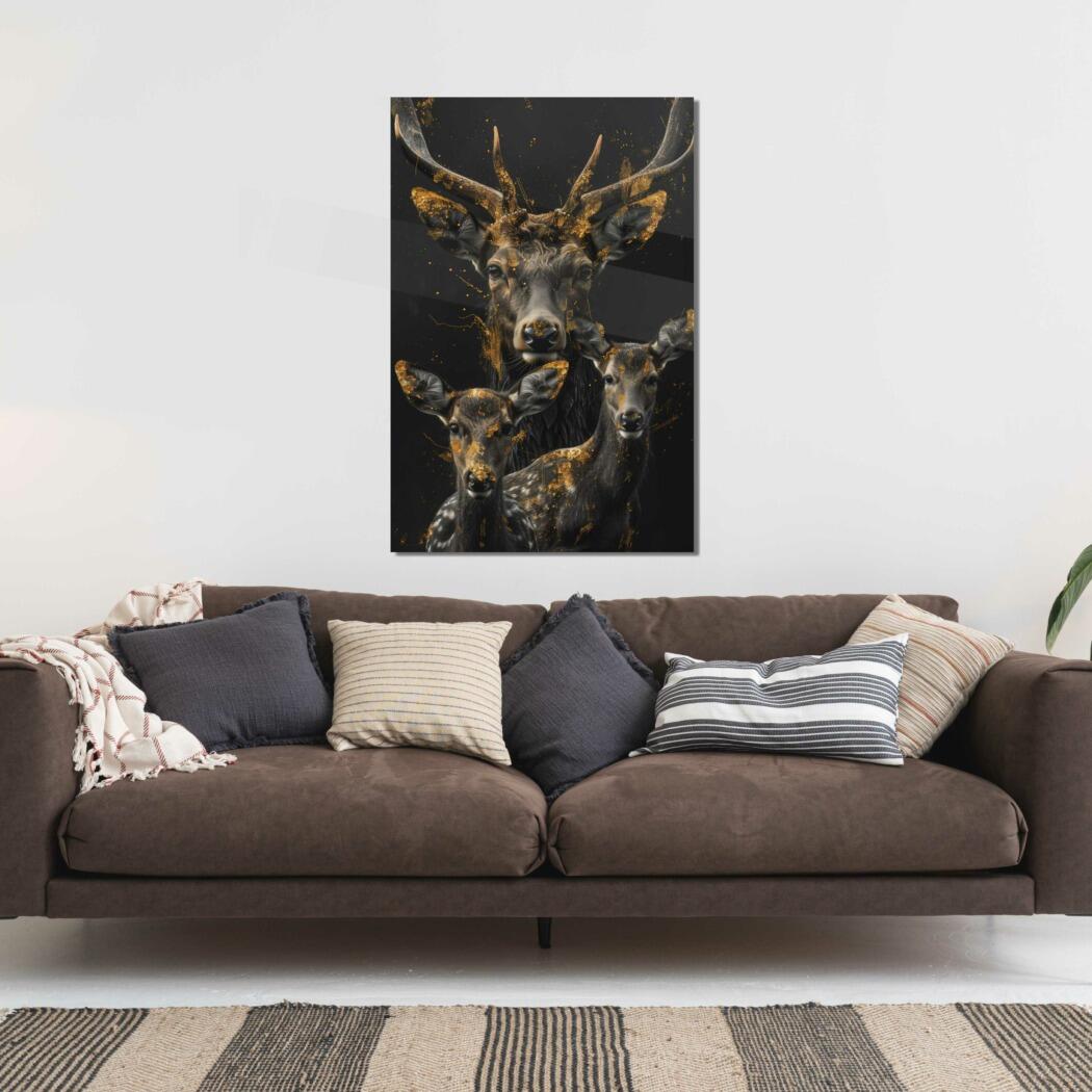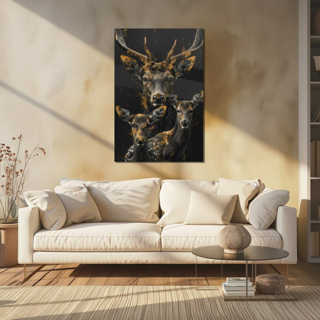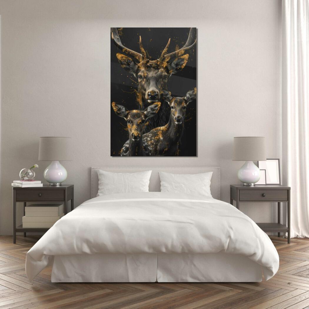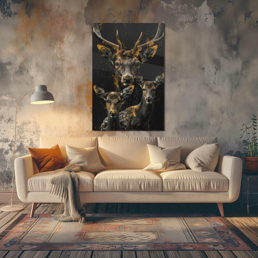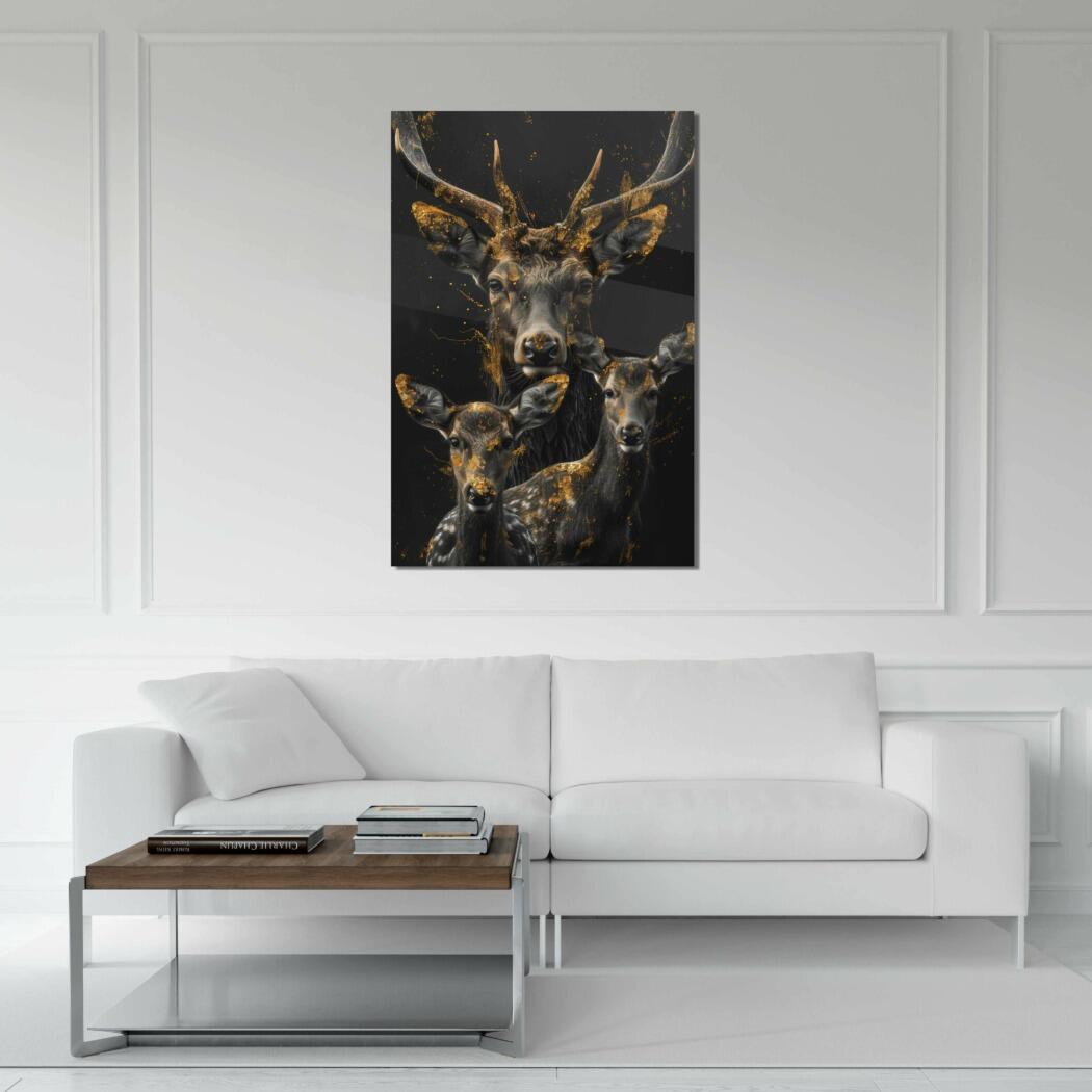 Glasschilderij – Exclusive – Staand – Hertenfamilie 2 Hertjes Aria – Gouden Eeuw Serie
