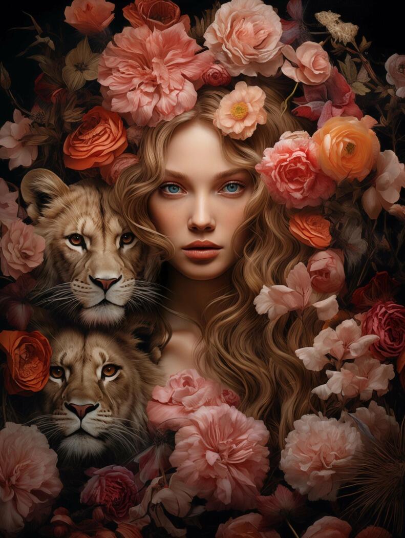 Glasschilderij – Exclusive – Staand – Vrouw met Roze Bloemen Amber